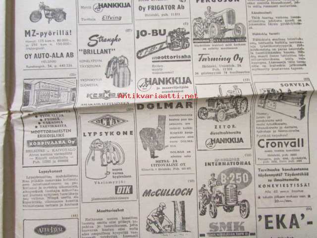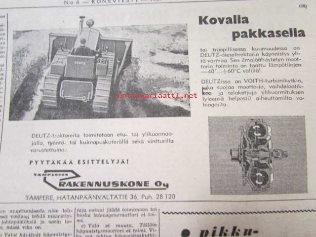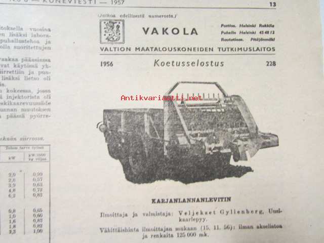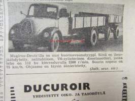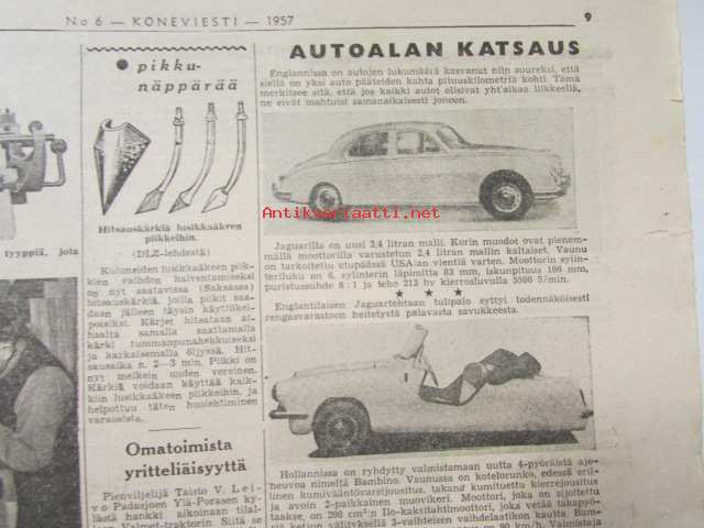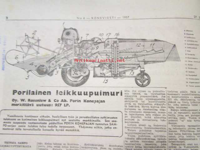 Maaseudun Ammattilehti Oy, 1957Koneviesti 1957 nr 6 -mm. Porilainen leikuupuimuri Rosenlew 956 LP, Lokomon Teräskarhu, Kansanmies keksijänä, Autoalan katsaus Jaguar ja Bambino, Magirus-Deutz, katso kuvista tarkempi sisältö28 x 42 cm.