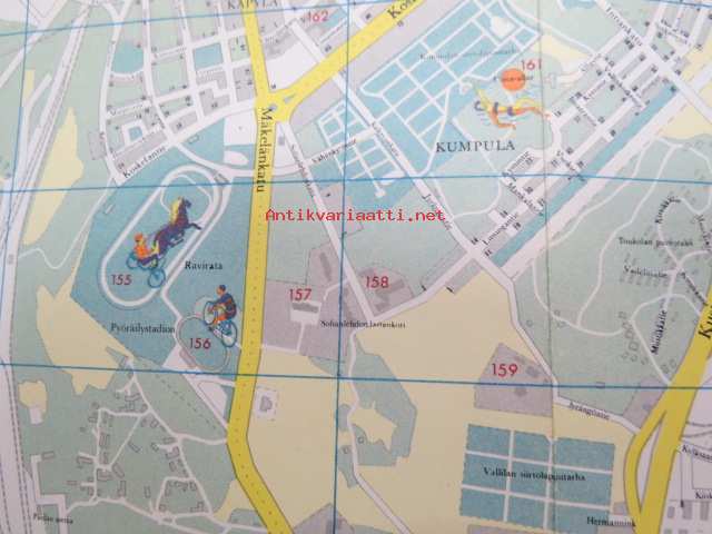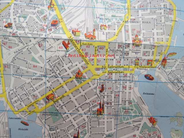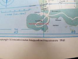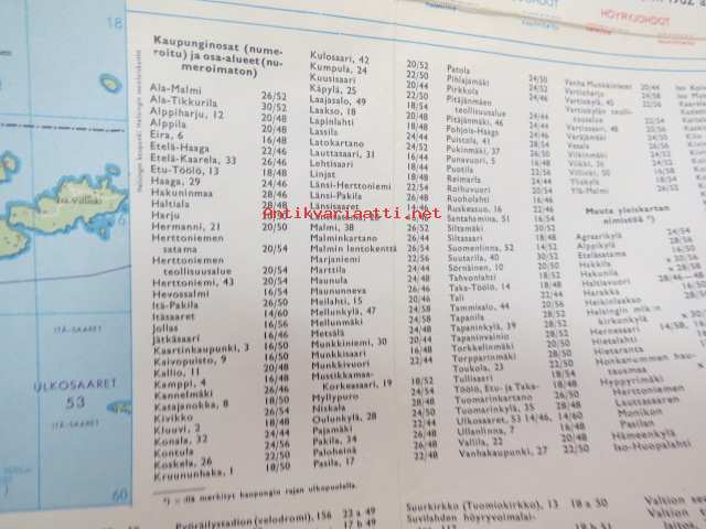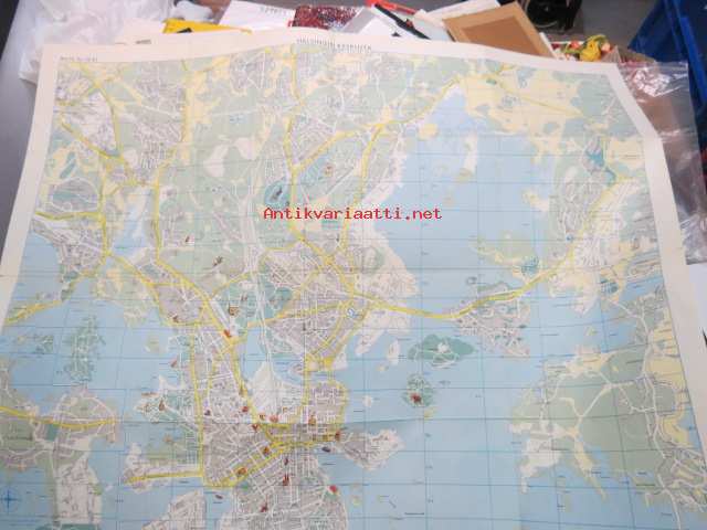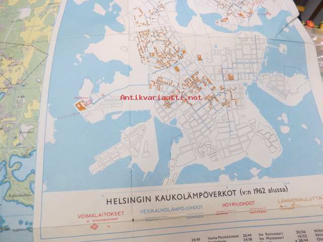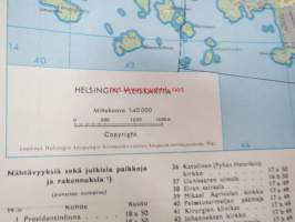 Helsinki Yleiskartta 1961, sis. keskustakartan, nähtävyydet, kaukolämpöputkistot, ym.