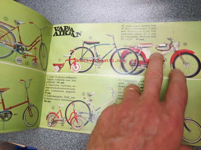 E-liikkeen Vapaa-aikaan (E-Osuuskauppa E-Suoja) 1968 -kuvasto, kesätarvikkeet, sis. mm. Goldie-polkupyörät ja mopedin ym.
