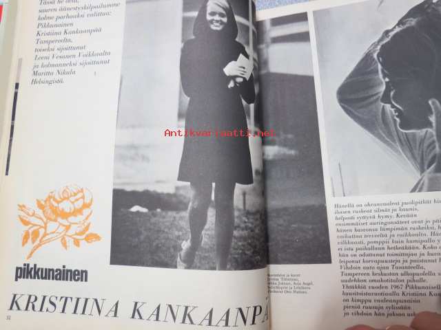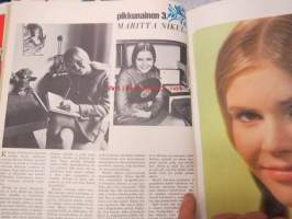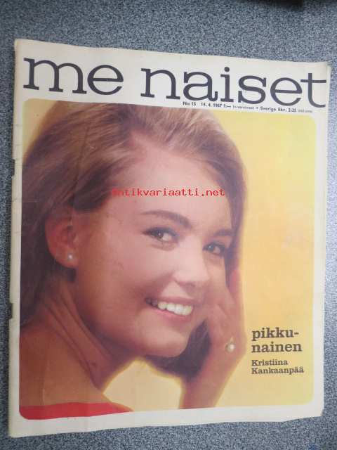 Me naiset 1967 nr 15 sis. mm. seur. artikkelit / kuvat / mainokset; Friitala, Kulta-Katriina, Koff Wienerbier, Pikkunaiset Kristiina Kankaanpää - Leeni Vesanen - Maritta Nikula, Marlboro, Pentti Holappa, Elokuvan museo - Suomen elokuva-arkisto, Finel, Finnhansa, Finnpartner, ym.23 x 27 cm.