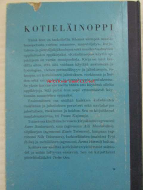 | Saatavilla | 1 kpl | | Julkaisuvuosi | 1959 | | Sivuja | 153 | | Painos | 1 | | Kunto | K3 | | löytyy alleviivauksia ja merkintöjä | | Sidonta/painoasu | Kuvitettu kovakantinen | | Kielet | Suomi |