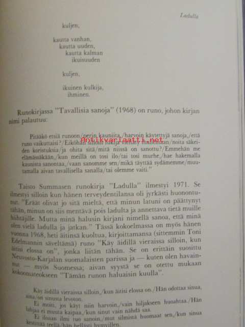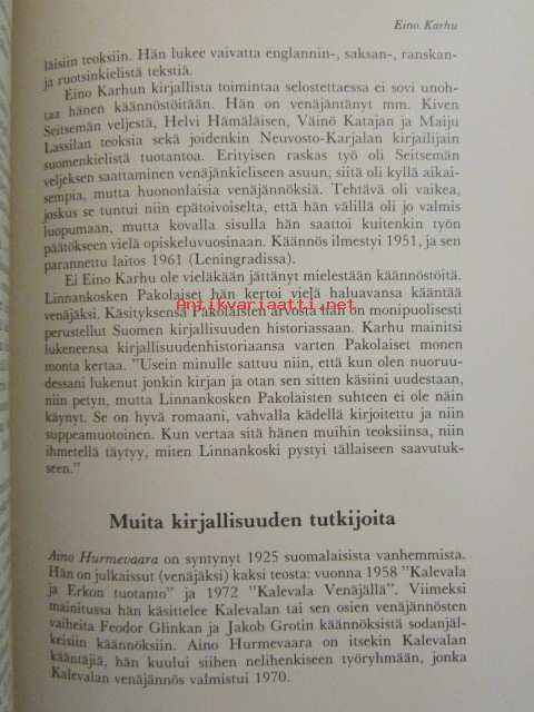 | Saatavilla | 1 kpl | | Julkaisuvuosi | 1981 | | Sivuja | 272 | | Painos | 1. | | Kunto | K3 | | Sidonta/painoasu | Sidottu (kansipaperit) | | ISBN | 951-35-2430-2 | | Kielet | Suomi |
