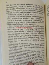 | Saatavilla | 1 kpl | | Julkaisuvuosi | 1976 | | Sivuja | 215 | | Painos | 1. | | Kunto | K3 | | Sidonta/painoasu | Sidottu (kovak.) | | ISBN | 951-0-22346-8 | | Kielet | Suomi |
