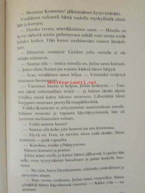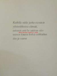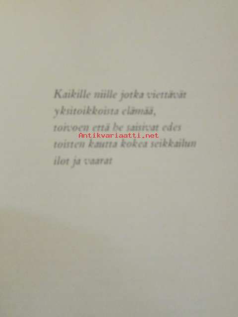 | Saatavilla | 1 kpl | | Julkaisuvuosi | 1974 | | Sivuja | 293 | | Painos | 1 | | Kunto | K3 | | Sidonta/painoasu | Kuvitettu kovakantinen | | ISBN | 951-0-06388-6 | | Kielet | Suomi |