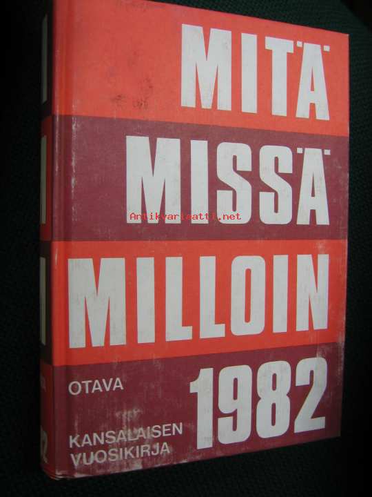 | Saatavilla | 1 kpl | | Julkaisuvuosi | 1981 | | Sivuja | 512 | | Kunto | K3 | | lähes lukematon, kansi hieman kulunut | | Sidonta/painoasu | Sidottu (kovak.) | | ISBN | 951-1-06482-7 | | Kielet | Suomi |