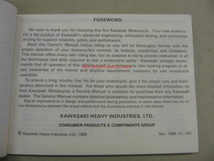 Kawasaki Heavy Industries Ltd, 1989Käyttöohjekirja englanniksi.