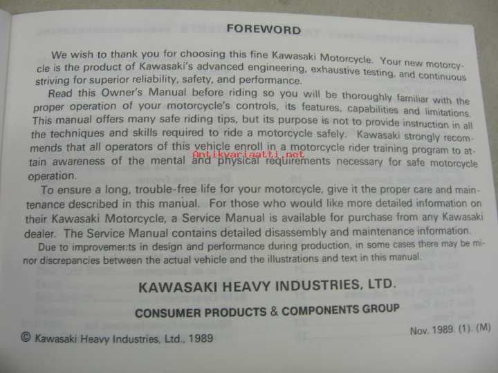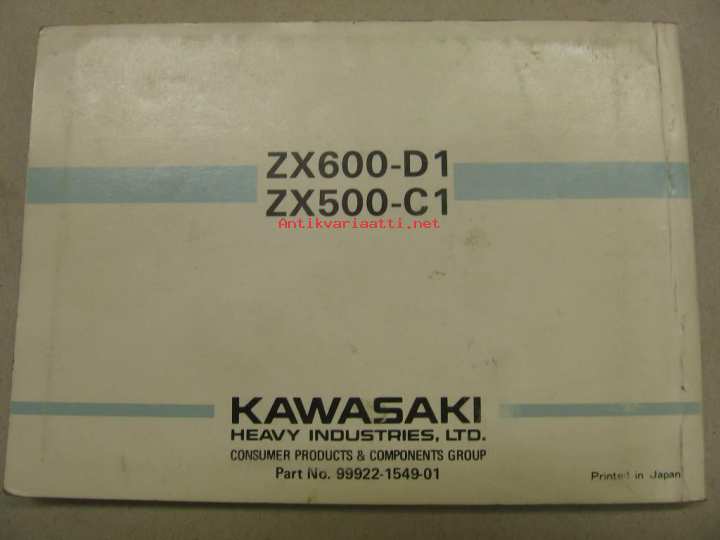 Kawasaki ZZ-R600-D1 ZZ-R500-C1 -käyttöohjekirja englanniksi