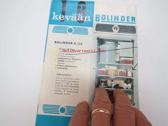 Bolinder S-125 v. 1958 uutuusjääkaappi -myyntiesite