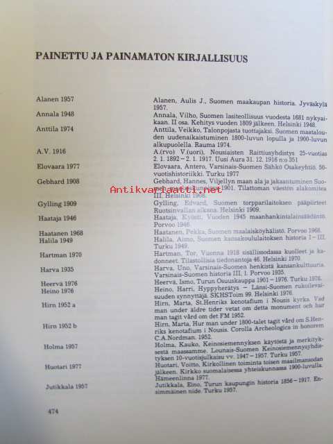 | Saatavilla | 1 kpl | | Julkaisuvuosi | 1980 | | Sivuja | 486 | | Painos | 1. | | Kunto | K3 | | Sidonta/painoasu | Sidottu (kansipaperit) | | ISBN | 951-99278-1-6 | | Kielet | Suomi |