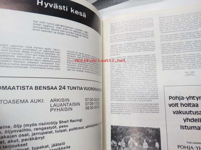 | Saatavilla | 1 kpl | | Julkaisuvuosi | 1982 | | Sivuja | 48 | | Kunto | K2 | | Sidonta/painoasu | Nidottu (pehmeäk.) | | Kielet | Suomi |