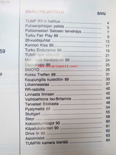 TUMP 1989 Turun Moottoripyöräilijät ry -vuosijulkaisu