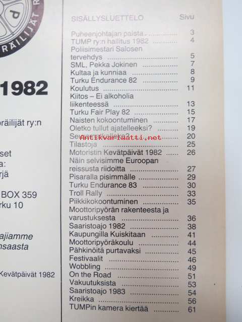 TUMP 1982 Turun Moottoripyöräilijät ry -vuosijulkaisu