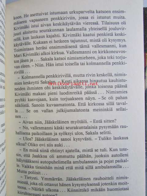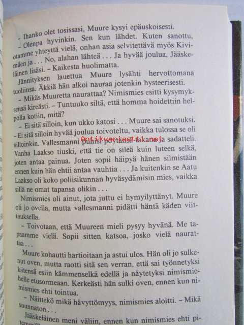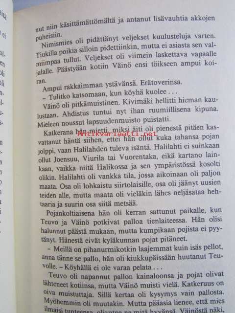 | Saatavilla | 1 kpl | | Julkaisuvuosi | 1991 | | Sivuja | 224 | | Painos | 2. | | Kunto | K3 | | Sidonta/painoasu | Sidottu (kansipaperit) | | ISBN | 951-20-3834-X | | Kielet | Suomi |