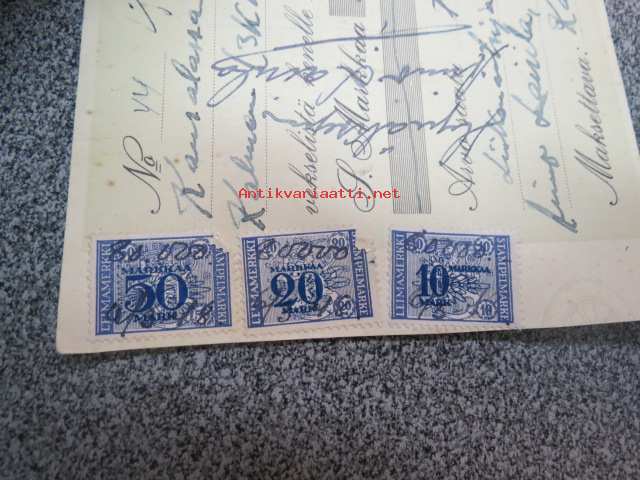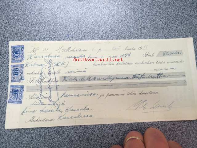 Vekselilomake 6.6.1948 leimamerkkeineen, Aimo Lairila, Kausala