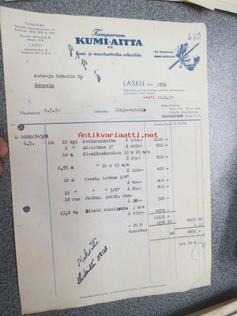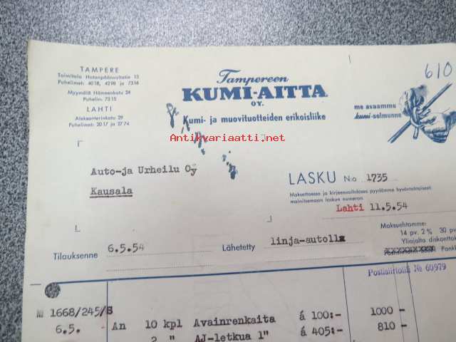 Tampereen Kumi-Aitta Tampere 11.5.1954 -asiakirja