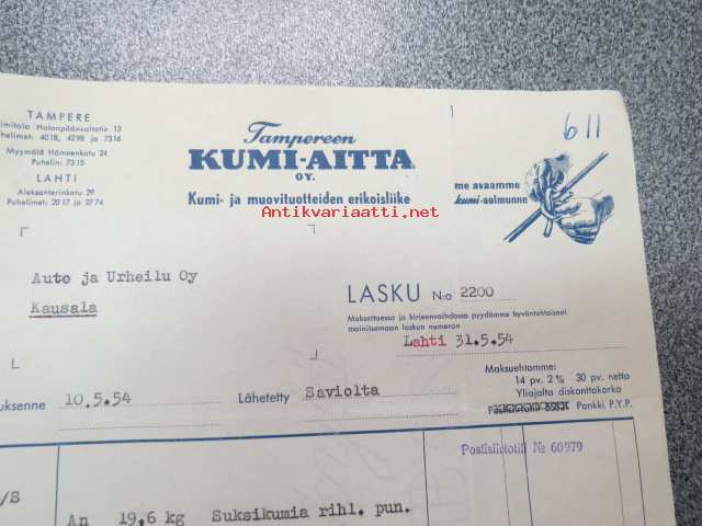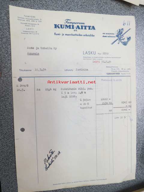 Tampereen Kumi-Aitta Tampere 31.5.1954 -asiakirja