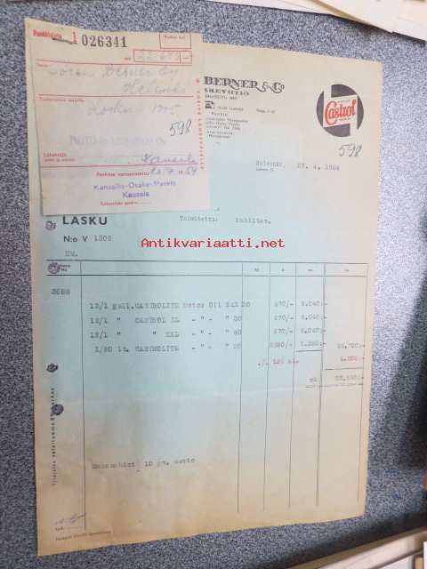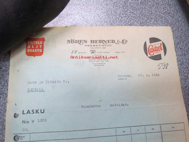 Sören Berner & Co, (Castrol) Helsinki, 27.4.1954 -asiakirja