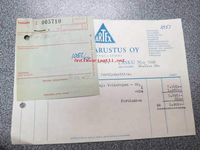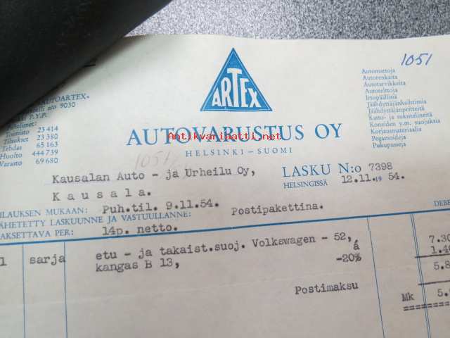 ARTEX Autovarustus Oy, Helsinki, 12.11.1954 -asiakirja