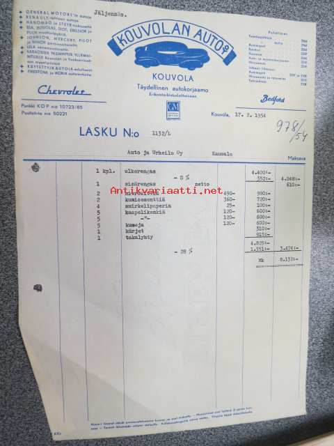 Kouvolan Auto Oy, Kouvola, 17.2.1954 -asiakirja