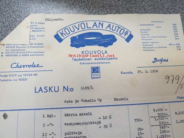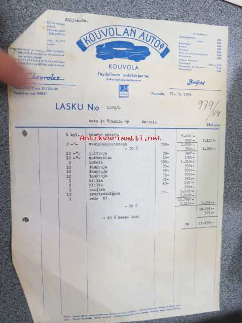Kouvolan Auto Oy, Kouvola, 27.2.1954 -asiakirja
