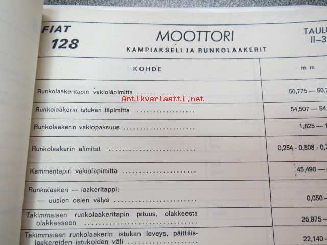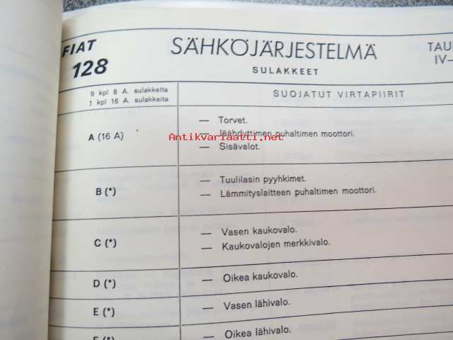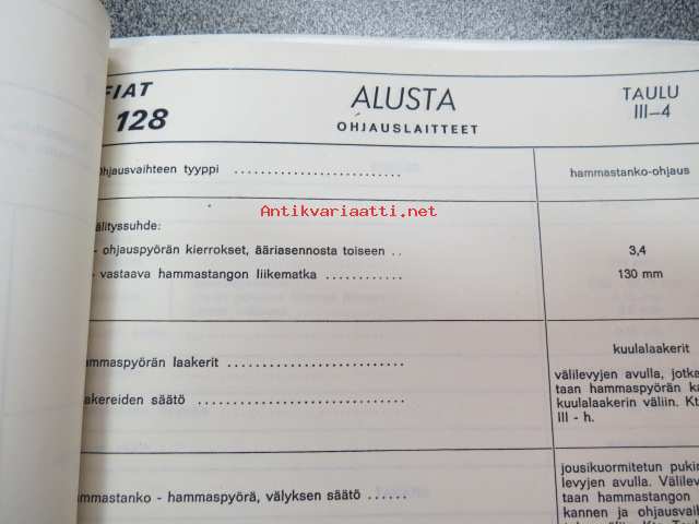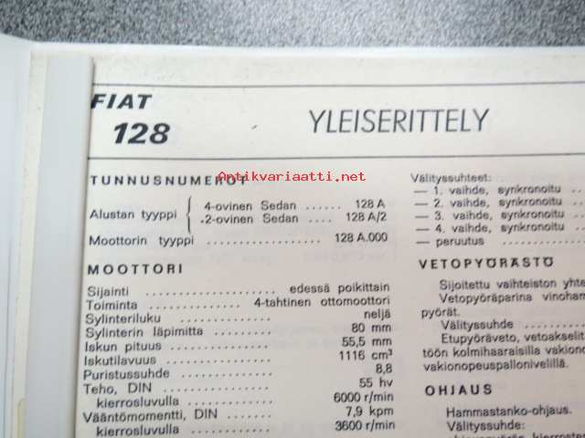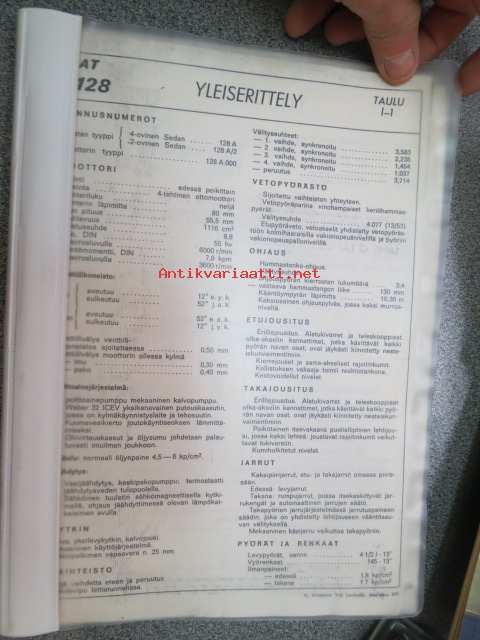 Fiat 128 (maahantuojan toimesta) tekniset tiedot koottuna kansioksi; mitat, ominaisuudet, sähkökaavio ym.