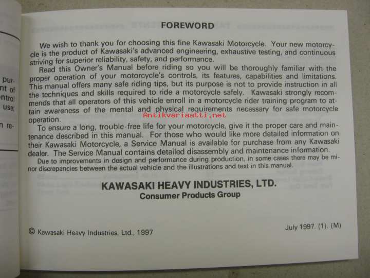 Kawasaki Heavy Industries Ltd, 1997Omistajan käsikirja englanniksi.