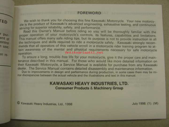 Kawasaki Heavy Industries Ltd, 1998Omistajan käsikirja englanniksi.
