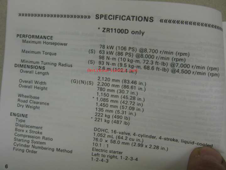 Kawasaki ZRX1100 (ZR1100-C3, ZR1100-D3) owner´s manual -käyttöohjekirja englanniksi