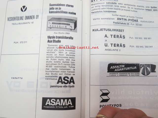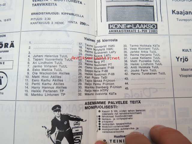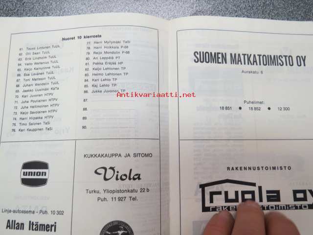 Turun Sanomien korttteliajot 20.4.1969 -käsiohjelma