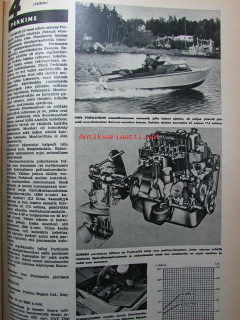 Tekniikan Maailma 1963 nr 4 -mm. Testissä 4 Perkins 4 OMC 480 4-Mer-Cruiser 4 Volvo/Penta Aquamatic, Suuren tyylin matkavene, Koeajossa Puch 150 SR ja NSU Prinz 4,