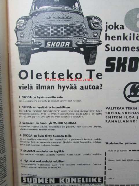 Tekniikan Maailma 1962 nr 1 -mm. Pieni Bassokotelo ja sen virittäminen, Citroen Ami6 koeajossa, Muovivene sukkamenetelmä, Autojen keskitysleiri, Mikä filmi on paras, Mitä on UHF?, katso kuvista tarkempi sisältö.21 x 29 cm.