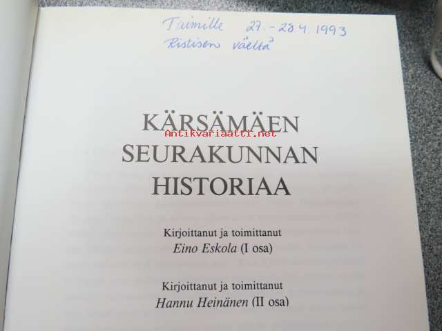 | Saatavilla | 1 kpl | | Julkaisuvuosi | 1992 | | Sivuja | 233 | | Painos | 1. | | Kunto | K3 | | Sidonta/painoasu | Kuvitettu kovakantinen | | ISBN | 952-90-3724-4 | | Kielet | Suomi |