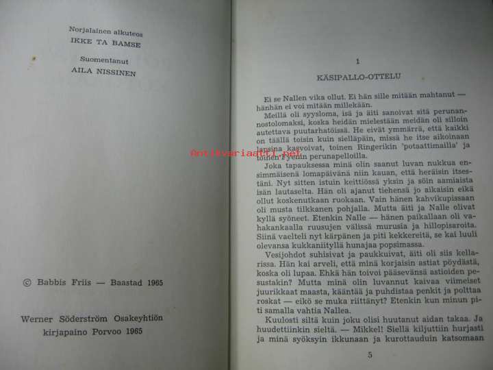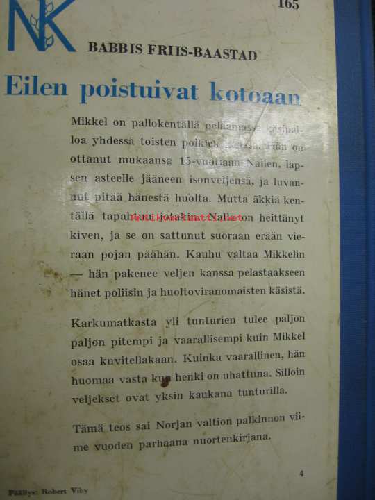 | Saatavilla | 1 kpl | | Julkaisuvuosi | 1965 | | Sivuja | 155 | | Kunto | K3 | | tyydyttävä, ei ed. omistajan nimeä | | Sidonta/painoasu | Sidottu (kovak.) | | Kielet | Suomi |