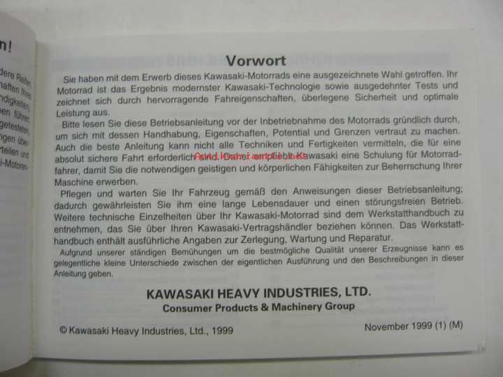 Kawasaki Heavy Industries Ltd, 1999Omistajan käsikirja saksaksi. Ei sähkökaaviota.