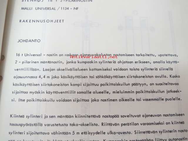 Stenhöj 16 t 2-pilarinostin malli universal/1134-SH rakennusohjeet