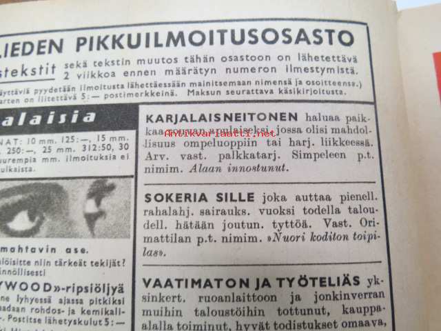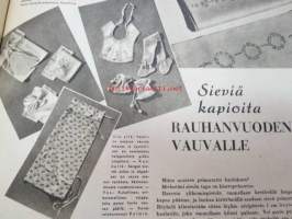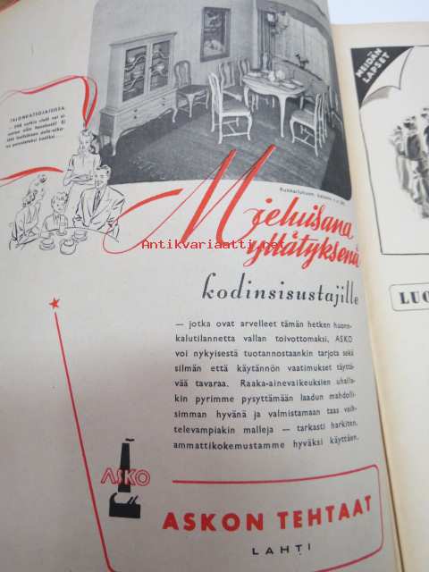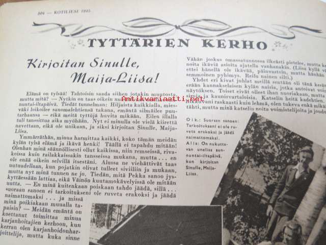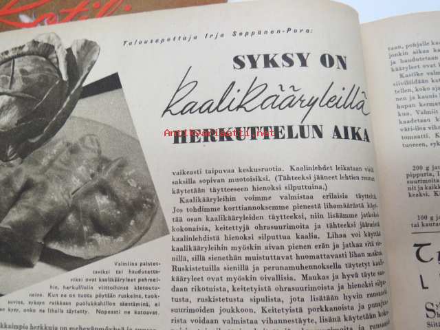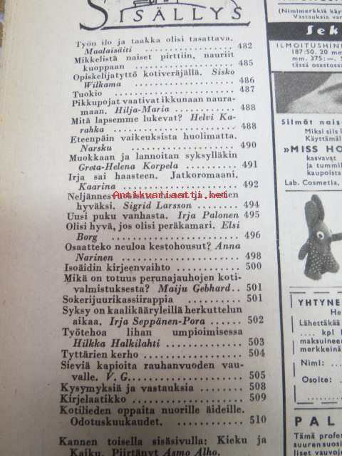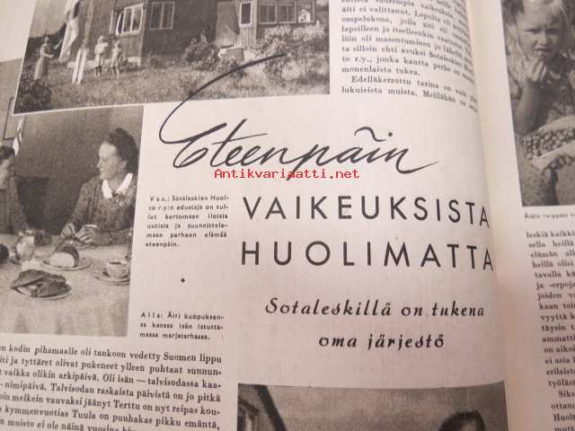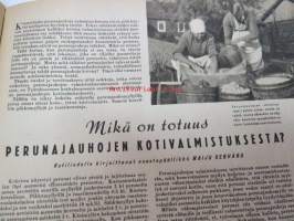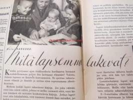 Kotiliesi 1945 nr 19, sis. mm. seur. artikkelit / kuvat / mainokset; Kansikuva Martta Wendelin, Askon Tehtaat - Lahti, Huhtamäki-yhtymä Oy maistiaishuone, Mikkelistä (Mikkelinpäivästä) naiset pirttiin - nauriit kuoppaan, Tohtori Sisko Wilkama - opiskelijatyttö kotiveräjällä, Mitä lapsemme lukevat?, eteenpäin vaikeuksista huolimatta - Sotaleskillä on tukena oma järjestö, Mannerheimin Lastensuojeluliitto 25-vuotias, Uusi puku vanhasta, Olisi hyvä jos olisi peräkamari, Osaatteko neuloa kestohousut?, Mikä on totuus perunajauhojen kotivalmistuksesta?, Kaalikääryleet, Lihan umpioiminen, Tyttärien kerho, Sieviä kapioita rauhanvuoden vauvalle, Odotuskuukaudet, Kieku ja Kaiku, Tornisteri-Kale - laukku koululaisille, ym.21 x 29 cm.