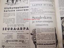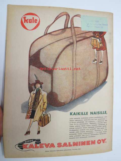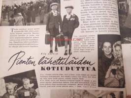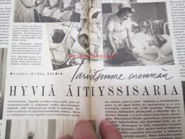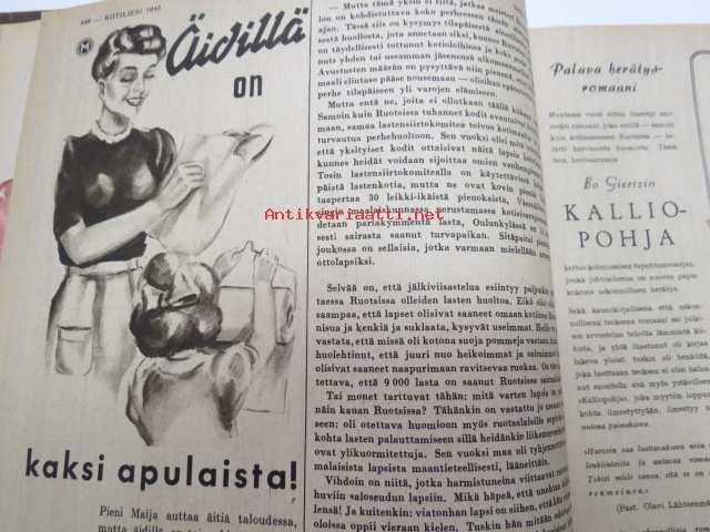Kotiliesi 1945 nr 21, sis. mm. seur. artikkelit / kuvat / mainokset; Kotiapulaispula ja talousharjoittelu, Tunnettuja naisia kotioloissaan - kansanedustaja Martta Salmela-Järvinen, Pienten lähettiläiden kotiuduttua - sotalapien paluuta, Jos minusta tulisi kunnanvaltuutettu?, Pirtinpöydän juhla- tai ruokaliina, Nykyajan verhokankaita, Tarvitsemme enemmän hyviä äitiyssisaria, Osaatteko käsitellä samettia ompelutyössä?, Äiti odottaa pienokaista, Porsas ja lammas talvivaroiksi, Helios Sarja-Sampo valokuvaamo - valokuvaaja Kaarina Procopé & Maija Kuosmanen, Kieku ja Kaiku, ym.21 x 29 cm.