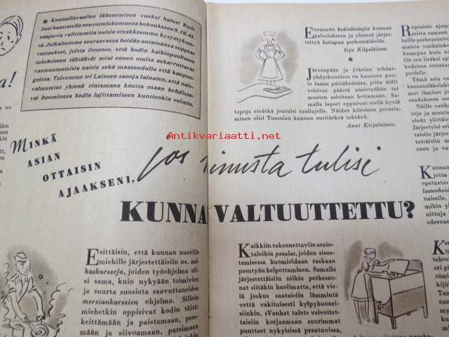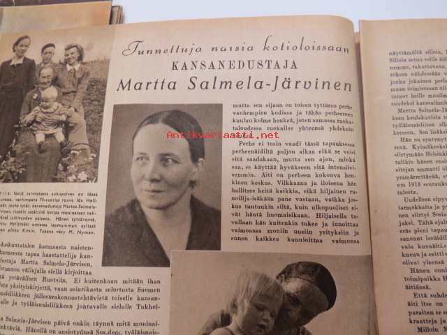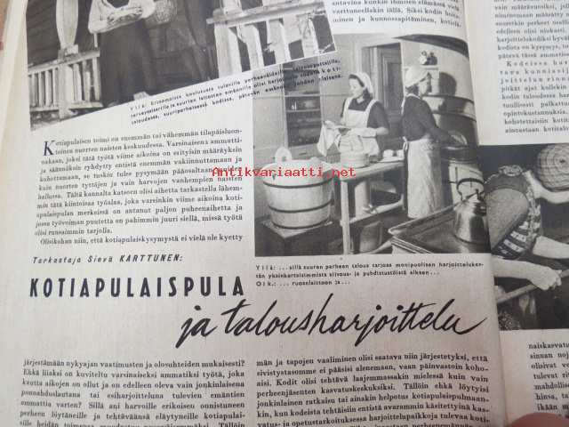 Kotiliesi 1945 nr 21, sis. mm. seur. artikkelit / kuvat / mainokset; Kotiapulaispula ja talousharjoittelu, Tunnettuja naisia kotioloissaan - kansanedustaja Martta