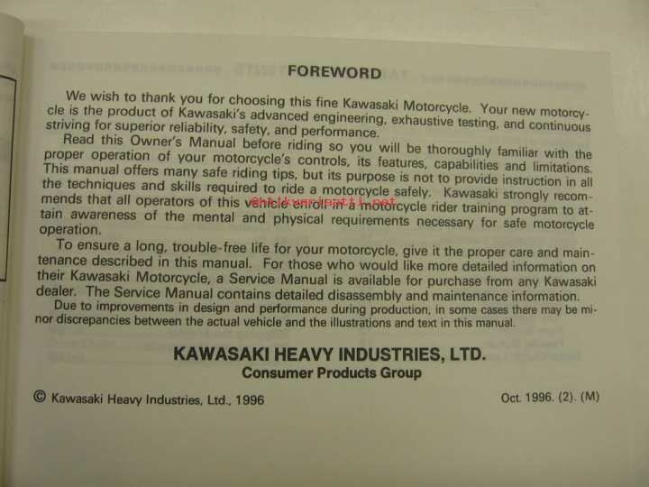 Kawasaki Heavy Industries Ltd, 1996Omistajan käsikirja englanniksi.