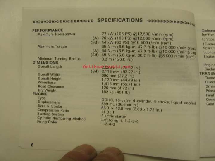 Kawasaki Ninja ZX-6R (ZX600-F3) Owner´s manual -käyttöohjekirja englanniksi