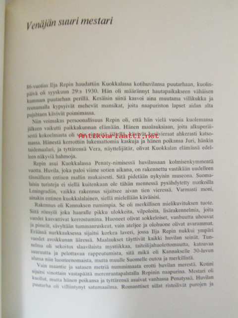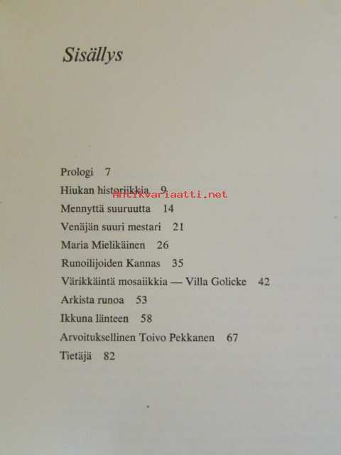 | Saatavilla | 1 kpl | | Julkaisuvuosi | 1968 | | Sivuja | 86 | | Painos | 1 | | Kunto | K3 | | Kansipaperi K2 | | Sidonta/painoasu | Sidottu (kansipaperit) | | Kielet | Suomi |