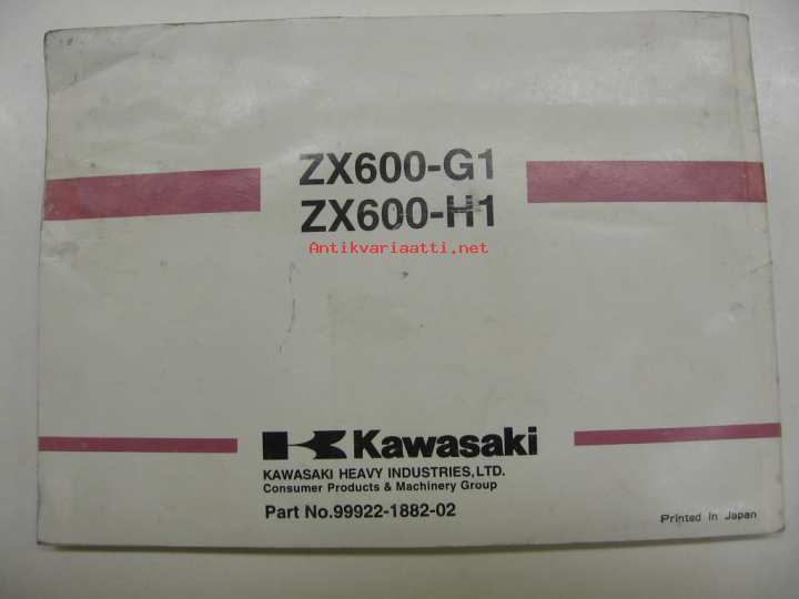 Kawasaki Ninja ZX-6R (ZX600-G1 ZX600-H1) Owner´s manual -käyttöohjekirja englanniksi