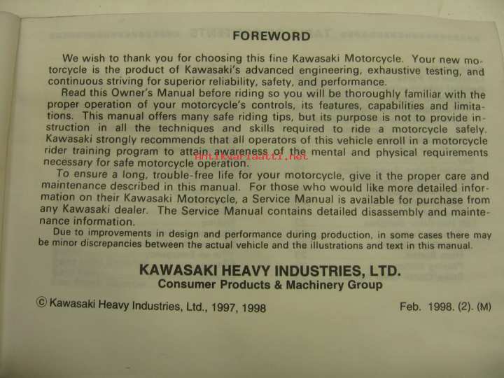 Kawasaki Heavy Industries Ltd, 1998Omistajan käsikirja englanniksi.