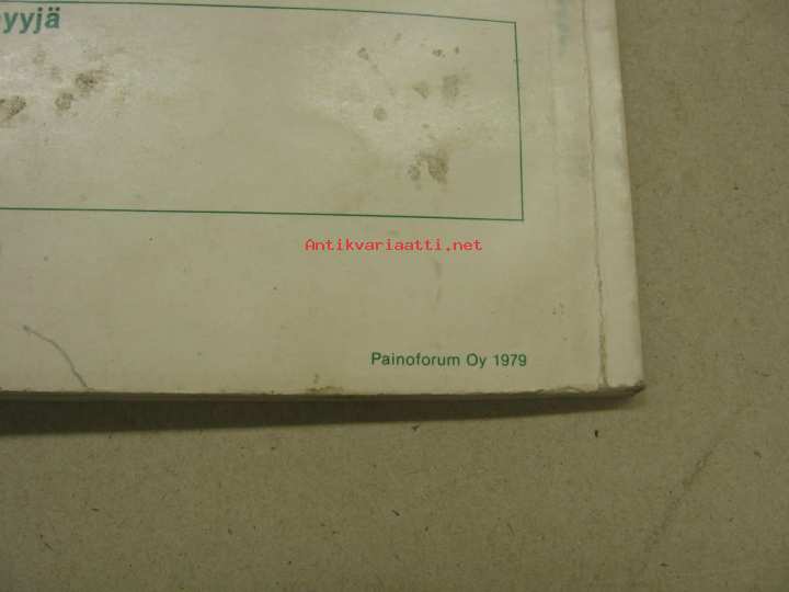 | Saatavilla | 1 kpl | | Julkaisuvuosi | 1979 | | Sivuja | 84 | | Kunto | K3 | | Sidonta/painoasu | Nidottu (pehmeäk.) | | Kielet | Suomi |