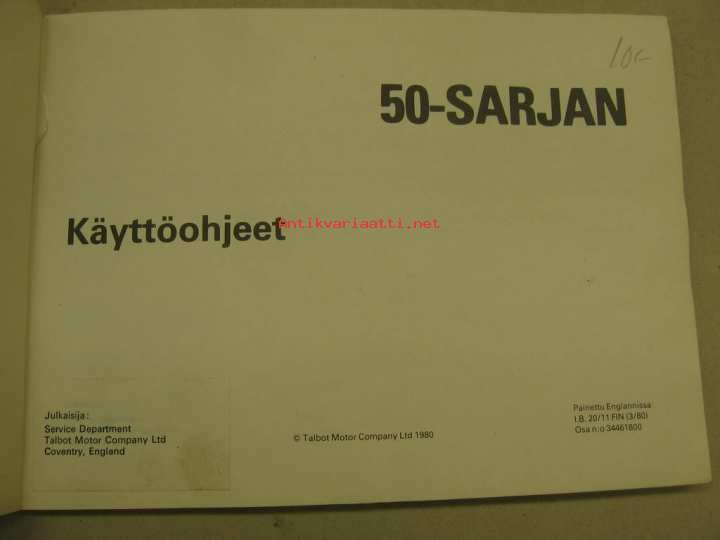 Talbot Motor Co Ltd, 1980A-5 kokoinen omistajan käsikirja.