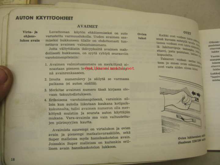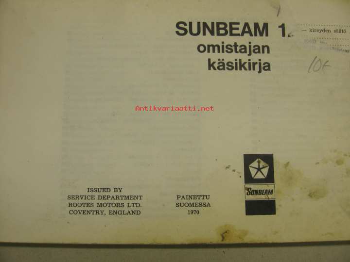 Chrysler Sunbeam , 1970A-5 kokoinen omistajan käsikirja.