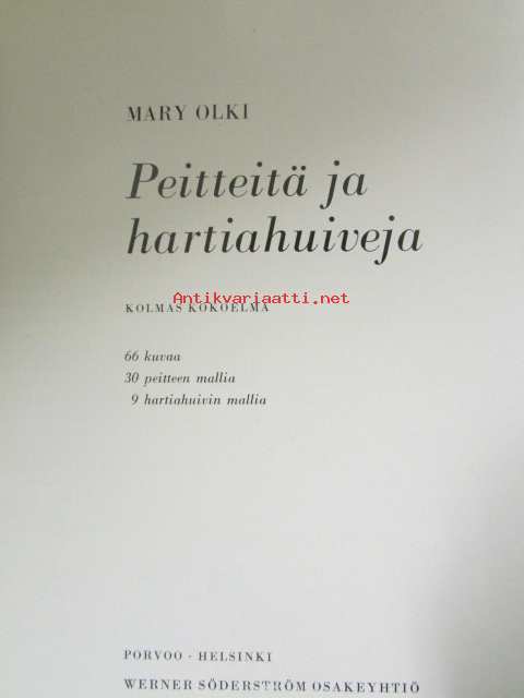 Olki Mary, WSOY, 197566 kuvaa, 30 peitteen mallia, 9 hartiahuivin mallia