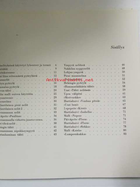 | Saatavilla | 1 kpl | | Julkaisuvuosi | 1975 | | Sivuja | 84 | | Painos | 3. | | Kunto | K2 | | Sidonta/painoasu | Nidottu (pehmeäk.) | | ISBN | 951-0-05678-2 | | Kielet | Suomi |