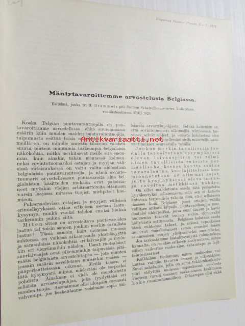 Mäntytavaroittemme arvostelusta Belgiassa esitelmä, jonka tri H. Brommels piti Suomen Sahateollisuusmiesten Yhdistyksen vuosikokouksessa 27/III 1929, ylipainos Suomen Puusta nr 7 1929