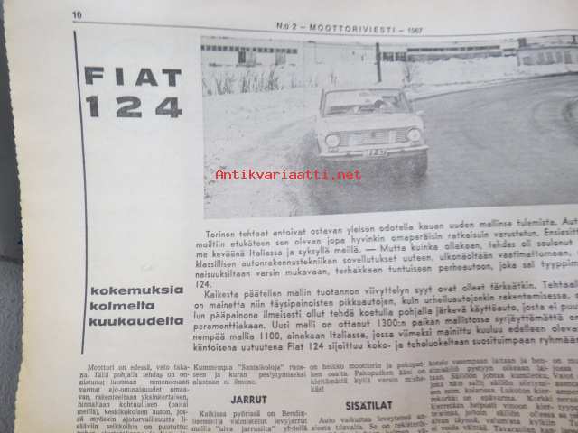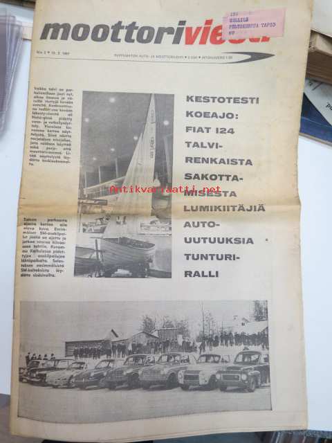 1967Moottoriviesti 1967 nr 2, sis. mm. seur. artikkelit / kuvat / mainokset; Fiat 1100, Kestotesti VW 1500 - Volkswagen Variant - Opel Kadett, Fiat 124 3kk koeajoraportti, Sunny 1000, Scimitar GT, Talvirenkaiden ominaisuuksista, Vene- ja retkeilynäyttely, Kulkuneuvoja siperialaisittain - lumikiitäjiä, Jääratakisat, Tunturiralli, North State, Ferrari, ym.